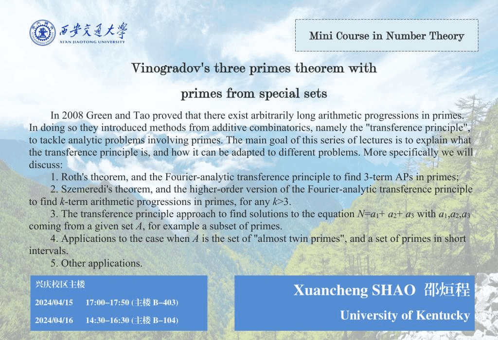 【数论短课程】 肯塔基大学邵烜程 (2024.04.15&16)