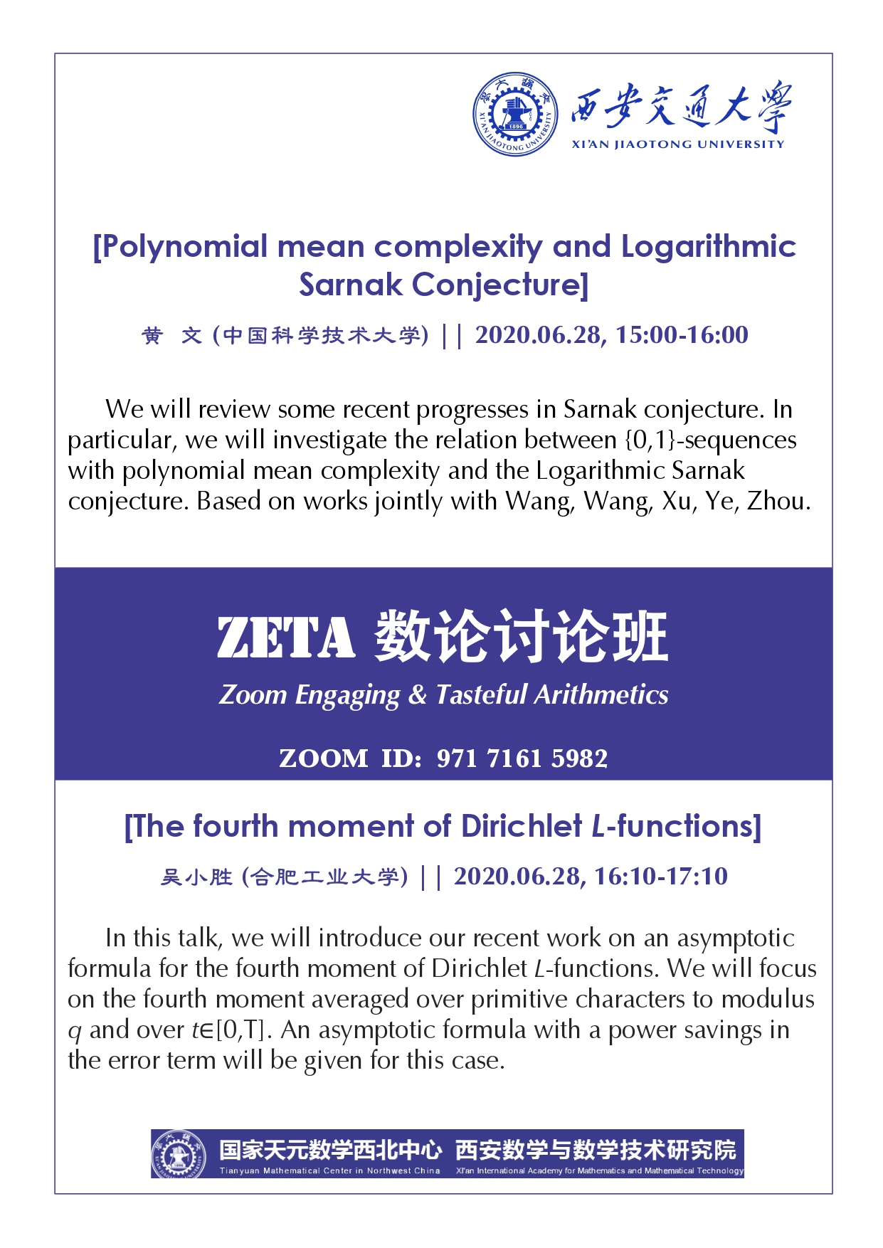 【ZETA数论讨论班】黄文、吴小胜 (2020.06.28)