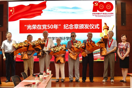 颜莉书记表示,在庆祝建党百年的重要时刻,党中央今年首次向党龄达到50周年、一贯表现良好的党员颁发“光荣在党50年”纪念章,充分体现了党中央对老党员的高度重视和亲切关怀,这也是对老党员忠诚党的事业、践行党的宗旨,为我国教育事业和民族伟大复兴无私奉献的最高褒奖。希望学院广大师生党员以颁发“光荣在党50年”纪念章为契机,结合党史学习教育,以老党员为榜样,传承他们胸怀大局、无私奉献的家国情怀,严谨治学、薪火相传的优良教风,不畏困难、艰苦奋斗的精神风范,求真务实、敢为人先的卓越品质,在新的历史征程中传承和发扬好西迁精神,努力书写交大数学人听党指挥跟党走、拼搏奋进新时代的新篇章。